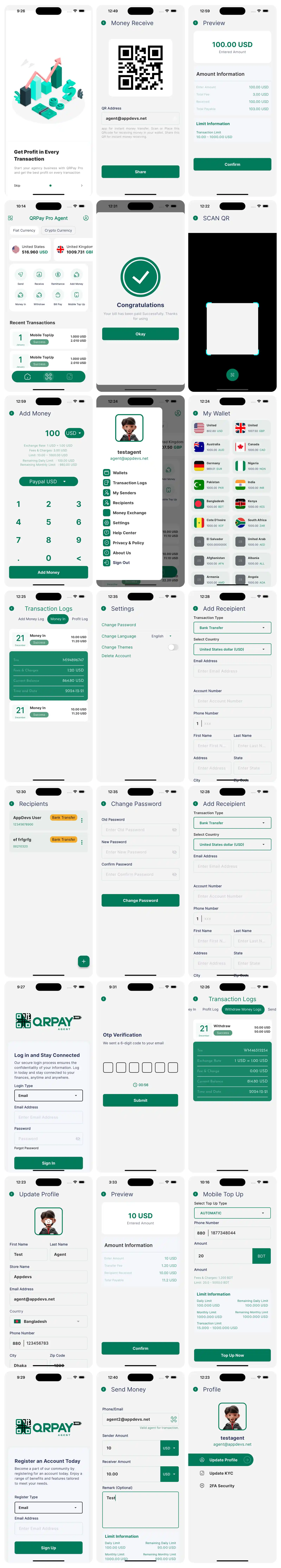 QRPay Pro supports QR code payments, wallet transfers, agent cash-in/cash-out, multi-currency wallets, remittance services, virtual cards, bill payments, mobile top-ups, and WooCommerce payment integration, enabling you to operate like a modern digital payment platform.