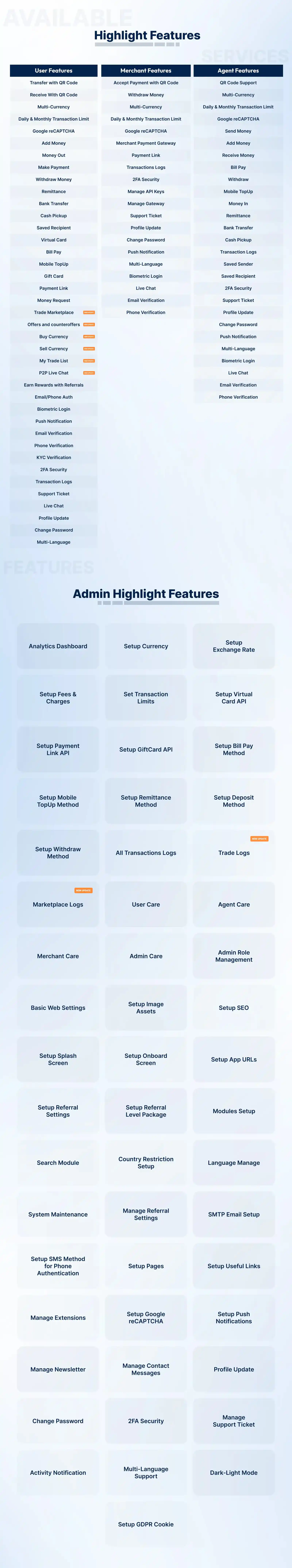 This all-in-one bundle includes User App, Merchant App, Agent App, Website, and Admin Panel, providing a ready-to-deploy financial platform suitable for wallet services, QR payments, remittance systems, and merchant networks.