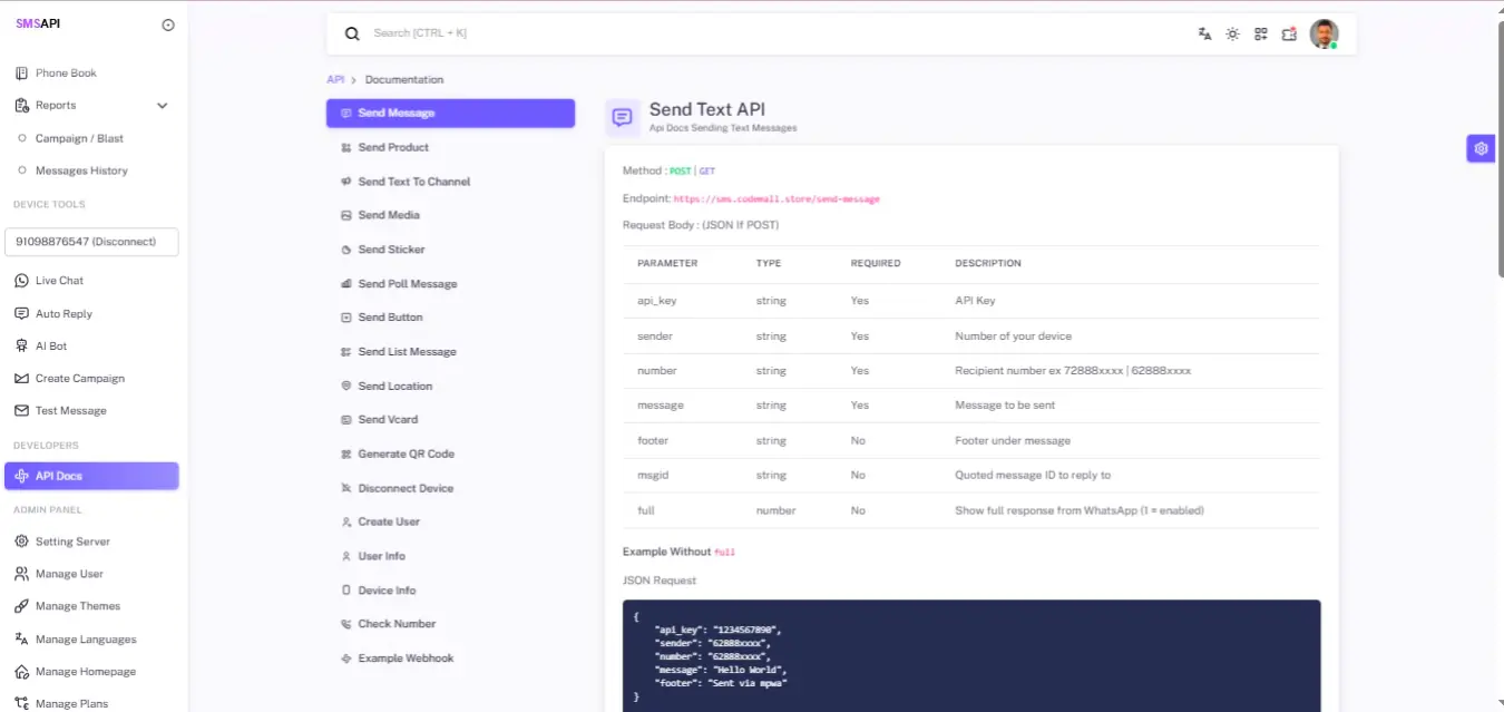 This system allows you to connect multiple WhatsApp numbers and devices, send bulk messages, build AI-powered chatbots, manage subscriptions, and offer WhatsApp APIs to your customers — all from a modern, clean, and fully responsive dashboard.
